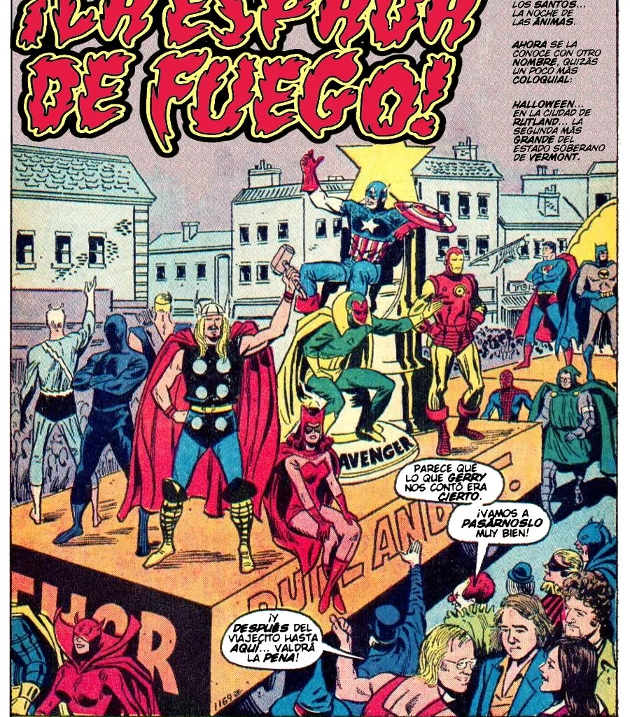 El resumen es el siguiente: Gerry, Steve, Len y Glynis hacen un viaje en grupo hasta Rutland para asistir a su famoso desfile de Halloween. La historia inicia en Amazing Adventures, donde se encuentran con Hank McCoy, también conocido como La Bestia, y tienen un enfrentamiento con Juggernaut; continúa en Thor, donde conocen al Dios del Trueno y a Loki, y concluye en Justice League of America. En los tres números podemos ver a estos creativos asistiendo al desfile, y ahí, sin ser experto, uno descubre que aparecen personajes de ambas compañías.